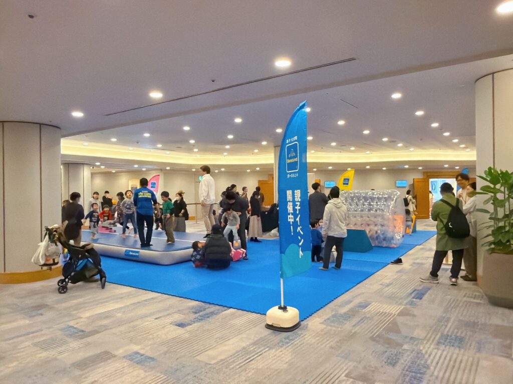 関東学院大学と横浜ベイシェラトンホテルによる産学連携プロジェクトとして実現したこのイベント。ラミレスさんや小森純さんのトークショー、ボーネルンドの移動遊び場、各メーカーの体験ブースなど、親も子も一緒に楽しめる盛りだくさんのプログラムで構成されていました。