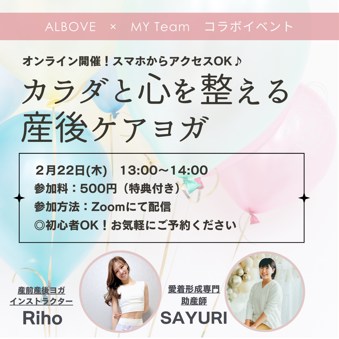 【産後ママ必見!】2/22オンライン開催!カラダと心を整える 産後ケアヨガレッスン|MY Team×ALBOVEコラボイベント