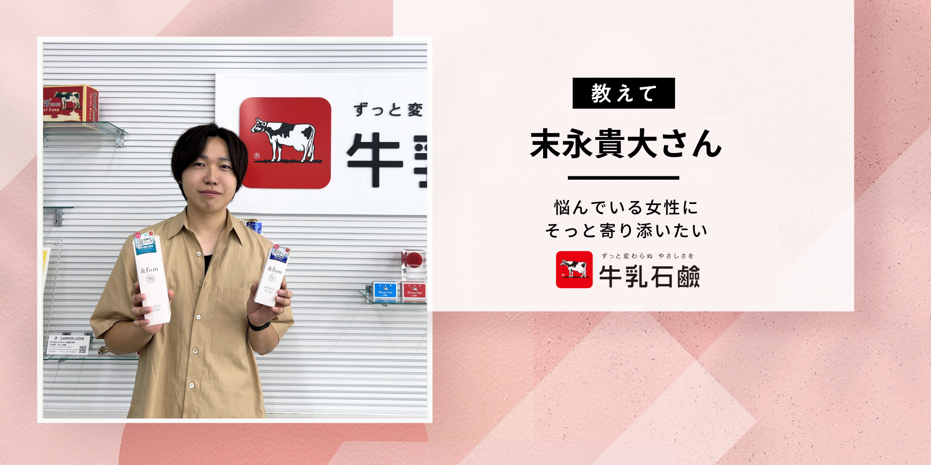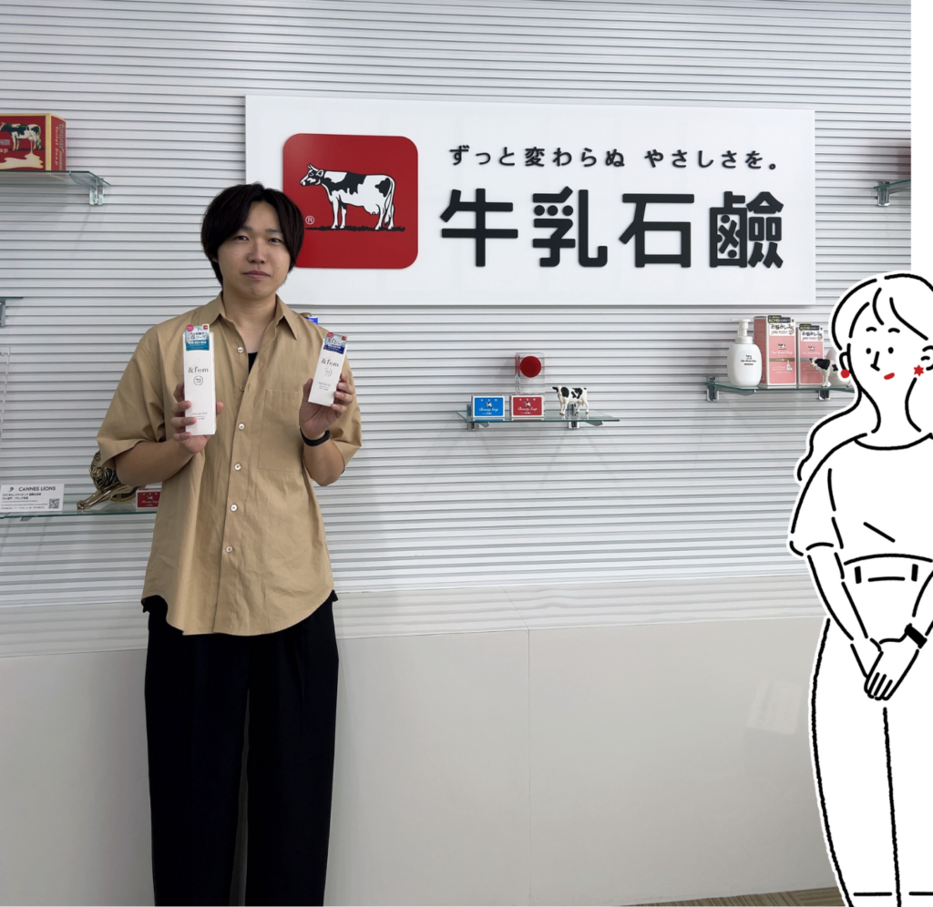 赤箱、青箱で有名な牛乳石鹸さんだけど、フェムケア商品が誕生していたって知ってた?デリケートゾーンケア商品が誕生して好評だということで、開発担当の末永貴大さんと原田綾佳さんにお話しを伺ってきたよ!