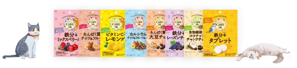 CARE Me を食べれば、気軽においしくたのしくケアできる。日々頑張る女性たちが自分を労わるきっかけづくりとして手に取っていただきたい商品です。